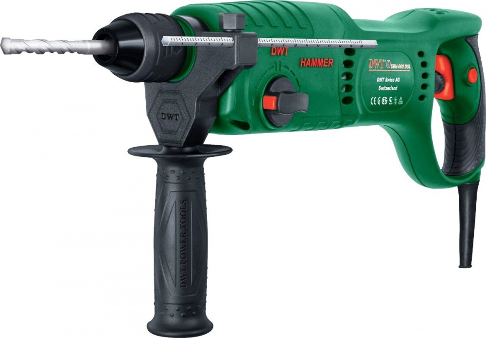 Перфоратор DWT SBH-600 DSL предназначен для сверления отверстий в древесине, пластике, металле, а также для сверления с ударом в кирпиче, бетоне и подобных материалах. Они имеют большую силу удара, поэтому при частом сверлении отверстий в бетоне их применение является более предпочтительным, чем использование электродрелей. Конструкция этой модели позволяет также производить долбежные работы - прокладывать каналы для кабеля, удалять керамическую плитку и т.п. Наличие функций реверса и электронного контроля скорости, позволяет использовать электроинструмент в качестве шуруповерта.
