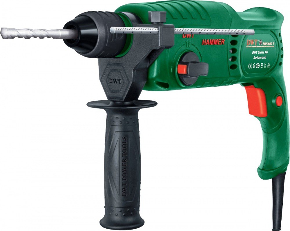 Перфоратор модели DWT SBH-600 T станет неотъемлемой частью набора необходимых инструментов как профессионального строителя, так и любого хозяина дома. Данная модель электроинструмента отлично справится с долблением, сверлением и даже, при необходимости, штробильными работами, к примеру для прокладки проводки, на любых типах самых твердых материалов, будь то кирпич или бетон.