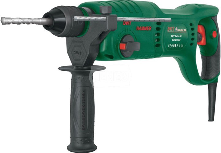 Перфоратор DWT SBH-900 DSL оснащен высокотехнологичным двигателем горизонтального расположения, номинальной мощностью 900 Вт, позволяющим инструменту эффективно выполнять работы по сверлению отверстий в металле, пластике, дереве, и сверление с ударом в кирпиче или бетоне. На холостом ходу, модель развивает 1 100 оборотов в минуту, что достаточно для удаления продуктов бурения и эффективного сверления отверстий. Мощный и прочный механический ударный механизм, способен продуктивно скалывать материал в отверстиях до 30мм, совершая удары энергией 2.2 Дж, с частотой 5800 ударов в минуту. Перфоратор имеет высокий уровень безопасности («II» класс).