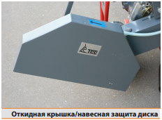 - откидная крышка, навесная защита диска, разработана, чтобы обеспечить легкую замену диска;ручной тормоз, который облегчает работу на поверхностях с наклоном;