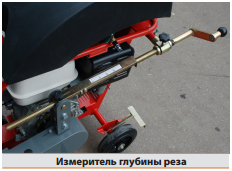 - плавно фиксируемая глубина нарезаемого шва. Прямой и точный срез, благодаря расположенного на панели управления измерителя глубины реза. Глубина реза ручных шовнарезчиков ТСС составляет до 120 мм;
