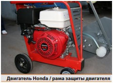- защиты двигателя. Мощная стальная рама позволяет избежать возможную деформацию при длительной эксплуатации. Двигатель защищен стальной рамой, за которую удобно поднимать и переносить агрегат;