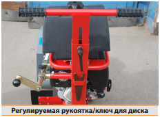 - легкое управление благодаря эргономичным органам управления: регулируемая рукоятка. Съемная рукоятка с индивидуальной регулировкой обеспечивает рабочее положение, почти не вызывающее утомления, ручка с демпфирующей накладкой и удобным захватом для повышения удобства работы оператора;