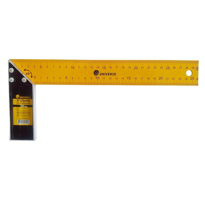 Угольник столярный Universe U15830 используется для разметки различных поверхностей, а также для проверки прямого угла обрабатываемой заготовки. Полотно изготовлено из инструментальной стали имеет окрашенную поверхность и двустороннюю разметку.