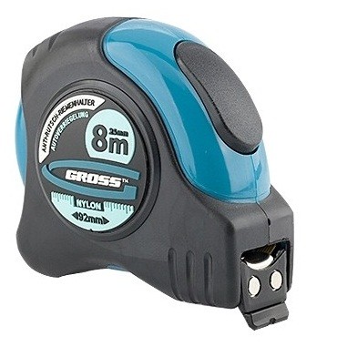 Рулетка Gross Schlagfest имеет автоматическую фиксацию измерительного полотна. Используется для измерений расстояний до 8 м. Эргономичный двухкомпонентный корпус рулетки выполнен из ABS пластика. Удобна в работе и не скользит в руке.
