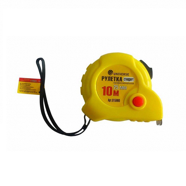 Рулетка Universe U15960 используется для проведения линейных измерительных работ, а также разметки различных поверхностей. Представляет собой металлическую ленту длиной 10 м с нанесенными делениями, которая намотана на катушку, заключенную в корпус.