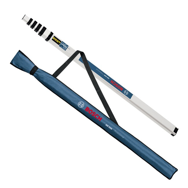 Измерительная рейка Bosch GR 500 - это пятиметровая рейка для различных моделей оптических нивелиров Bosch. Конструкция пятисекционная, длина увеличивается от 125 до 500 см. Измерительная рейка выполнена из высококачественного алюминиевого профиля, что гарантирует надежность и возможность использования даже в сложных строительных условиях.