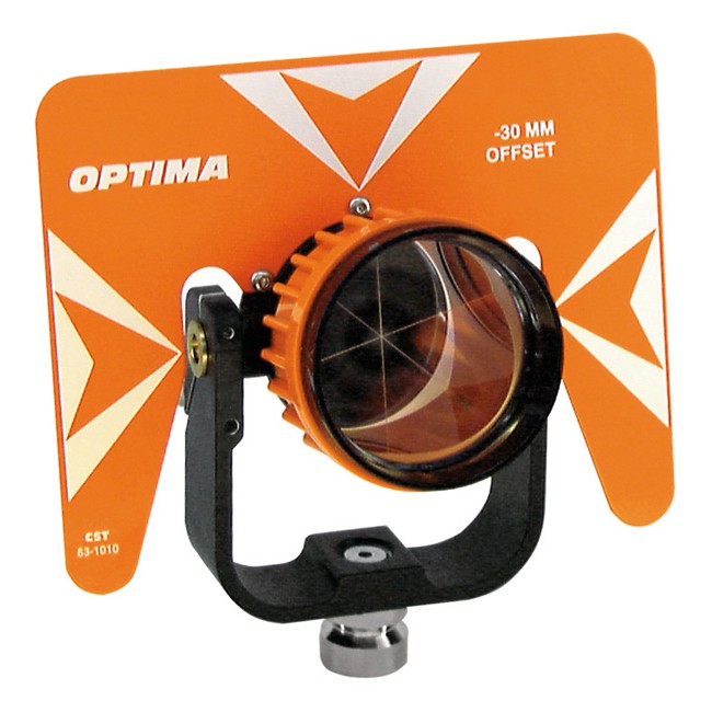 Однопризменный отражатель CST/Berger 63-1010-O серии Optima с креплением и металлической маркой оранжевого цвета - высококачественный аксессуар для выполнения измерений геодезическими приборами. Отражатель имеет установочный винт для выставления нужного угла наклона, байонетный адаптер с внутренней резьбой 5/8" и совместим с продукцией ведущих производителей.