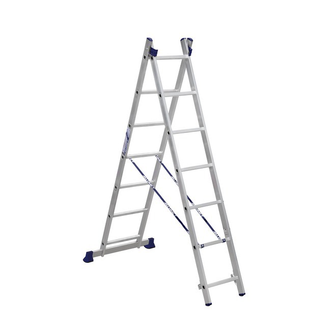 Двухсекционная универсальная алюминиевая лестница Алюмет H2 имеет широкую сферу применения благодаря продуманной телескопической конструкции, позволяющей использовать ее в качестве стремянки или приставной лестницы. Данный модельный ряд H2 отличается высоким показателем прочности, что дает возможность работать на высоте до 10 метров. Характерным преимуществом данной лестницы также является ее высокая устойчивость благодаря увеличенной ширине стабилизатора. Такое приспособление используется при ремонте и отделке зданий, установке окон и рекламных вывесок.