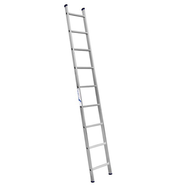 При использовании алюминиевая приставная лестница упирается на опоры-заглушки, которые устойчивы даже на скользком полу. Переносная приставная лестница — не раздвижная. У нее простая конструкция с двумя направляющими, соединенными перекладинами. Ступени имеют рифленую поверхность, что предотвращает соскальзывание. Крепятся они самым надежным способом — развальцовкой в стойки: прямоугольный профиль перекладин проходит через направляющие насквозь, а их края загибаются снаружи.