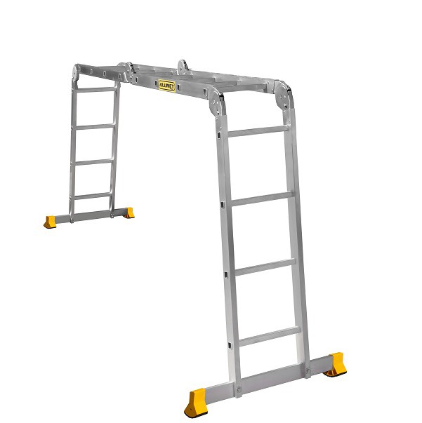 Лестница-трансформер Алюмет Т444 4х4 - это многофункциональная конструкция, предназначенная для бытового или профессионального использования. Все элементы, ступени и направляющие лестницы выполнены из прочного, алюминиевого профиля.