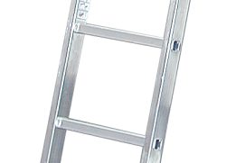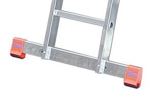 Широкая поперечная траверса лестницы-трансформера способствует равномерному распределению нагрузки и устойчивости конструкции.