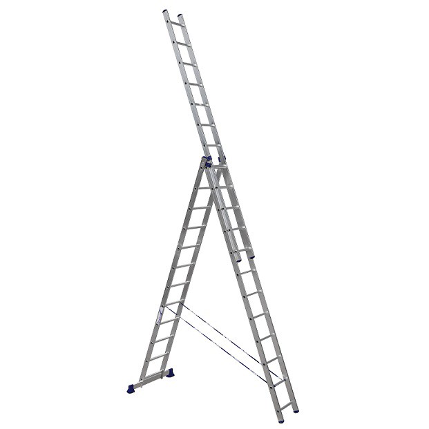 Это лестница, которая сочетает в себе сразу функции приставной лесницы, стремянки и двухсекционной лестницы. Она собрала все преимущества односекционной и двухсекционной лестниц. Состоящая из трех частей, она может использоваться в широком диапазоне высот. Имеется возможность применять верхнюю секцию, как отдельную небольшую приставную лестницу.