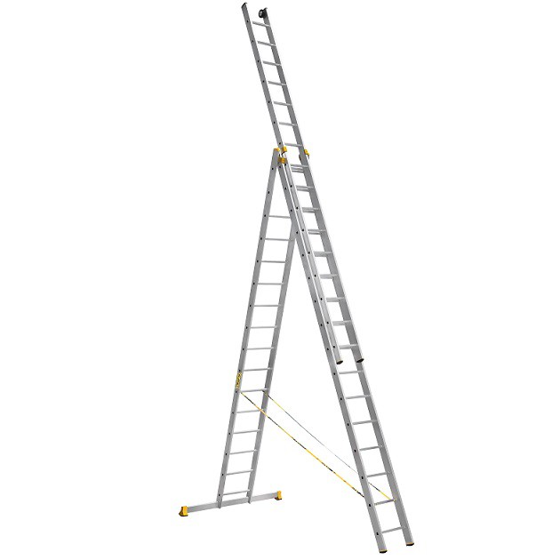 Это лестница, которая сочетает в себе сразу функции приставной лестницы, стремянки и двухсекционной лестницы. Она собрала все преимущества односекционной и двухсекционной лестниц. Состоящая из трех частей, она может использоваться в широком диапазоне высот. Имеется возможность применять верхнюю секцию, как отдельную небольшую приставную лестницу.
