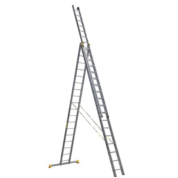 Это лестница, которая сочетает в себе сразу функции приставной лестницы, стремянки и двухсекционной лестницы. Она собрала все преимущества односекционной и двухсекционной лестниц. Состоящая из трех частей, она может использоваться в широком диапазоне высот. Имеется возможность применять верхнюю секцию, как отдельную небольшую приставную лестницу.