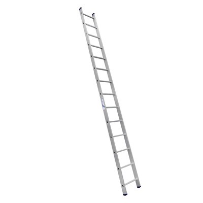 Лестница усиленная односекционная Алюмет 9114 - один из самых используемых видов лестниц. Все элементы, ступени и направляющие лестницы выполнены из прочного, алюминиевого профиля.