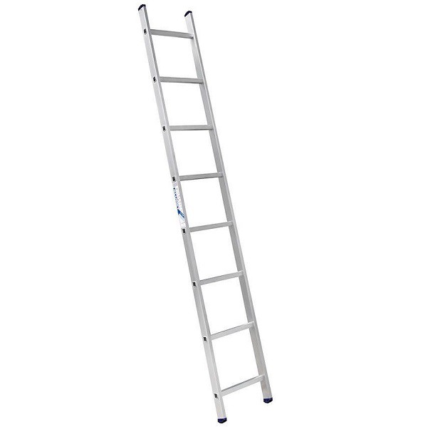 При использовании алюминиевая приставная лестница упирается на опоры-заглушки, которые устойчивы даже на скользком полу. Переносная приставная лестница — не раздвижная. У нее простая конструкция с двумя направляющими, соединенными перекладинами. Ступени имеют рифленую поверхность, что предотвращает соскальзывание. Крепятся они самым надежным способом — развальцовкой в стойки: прямоугольный профиль перекладин проходит через направляющие насквозь, а их края загибаются снаружи.