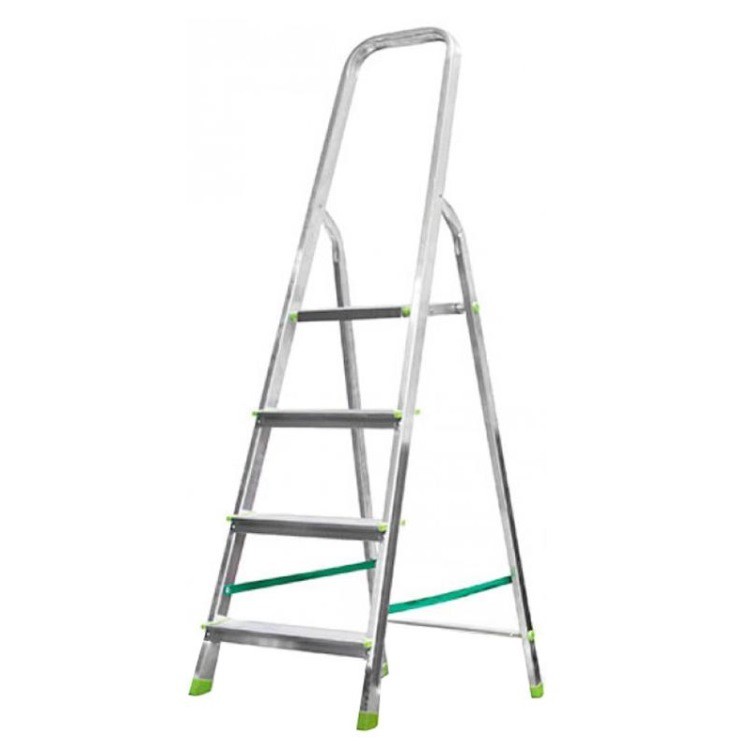 Лестница изготовлена из высококачественного алюминиевого профиля, обеспечивающего одновременно прочность и небольшой вес инструмента. Изделие оборудовано четырьмя надежно закрепленными ступенями. Рифленная поверхность ступеней предотвратит соскальзывание ноги при работе, а высокая дуга обеспечит безопасное поднятие на высоту. Острые края и срезы металла закрыты пластиковыми накладками. Антискользящие насадки на ножках обеспечивают устойчивое положение стремянки и защищают напольное покрытие от царапин. Ограничительные ремни позволяют предотвратить случайное складывание стремянки.