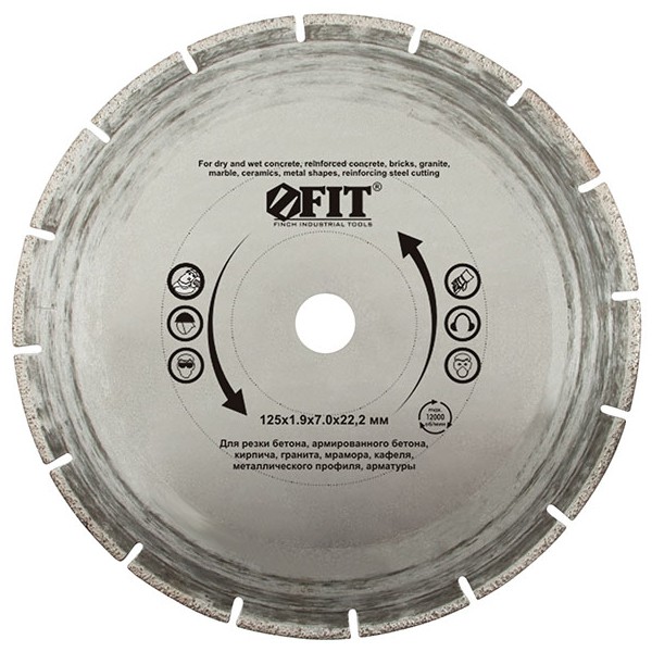 Алмазный диск Fit HQ 37313 является довольно универсальным и предназначен для резки бетона, кирпича, гранита, мрамора, металлического профиля, арматуры. Используется совместно с ручным инструментом.