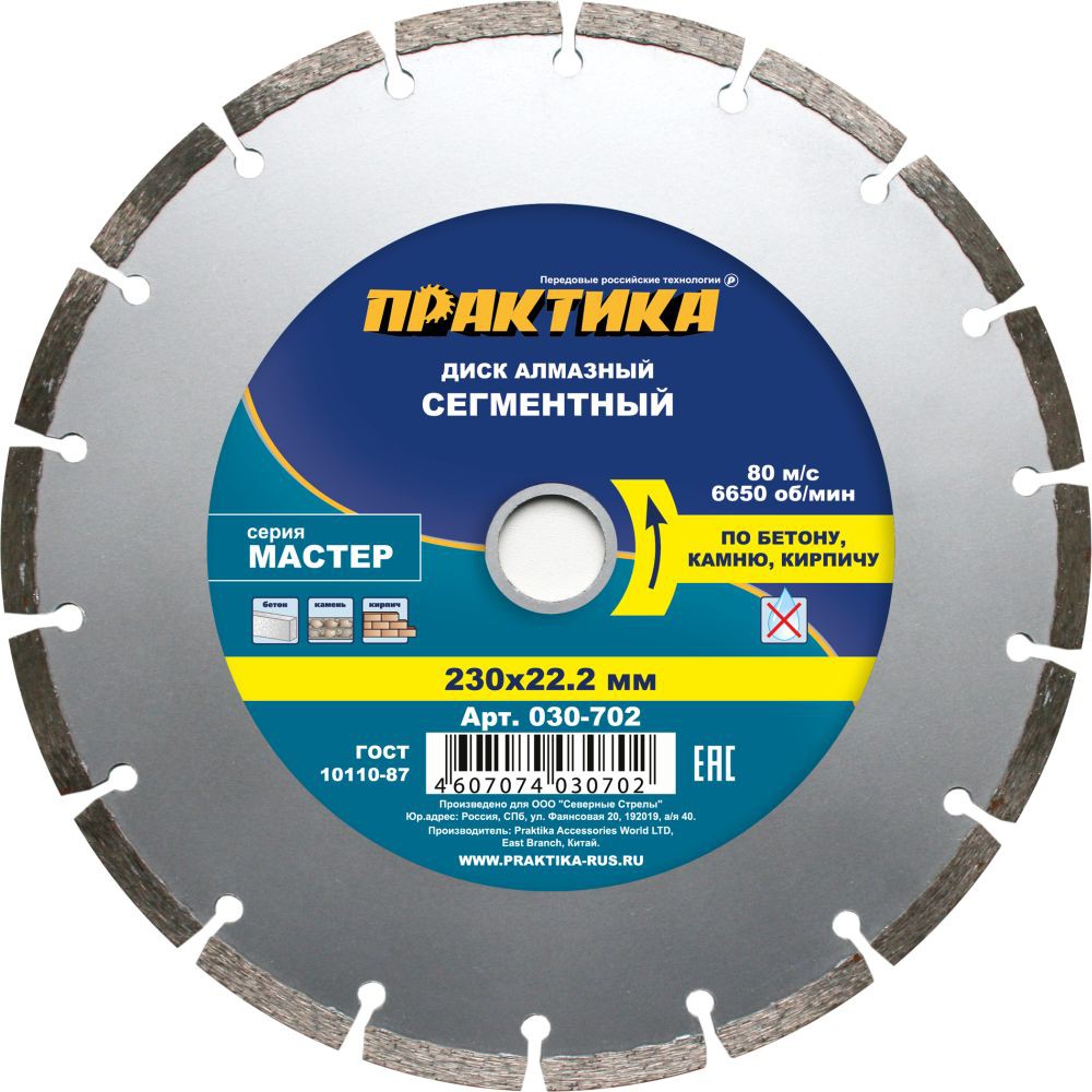 Алмазный диск Практика Сделай Сам 030-702 предназначен для резки бетона, кирпича, общестроительных материалов, искусственного и натурального камня. Способен разрезать тонкую арматуру в бетоне. Применяется для работы с ручным инструментом и небольшими станками. Не предназначен для абразивных материалов.