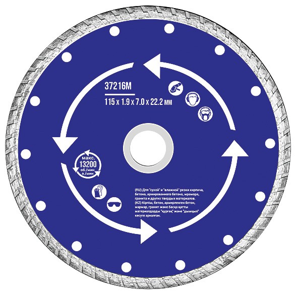 Специальный профиль режущей кромки Турбо увеличивает скорость реза и способствует более эффективному удалению отработанного материала, предотвращая перегрев диска.