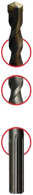 Инструмент применяется с зажимными патронами типа SDS-Max. В хвостовой части оснастки предусмотрено три открытых и два закругленных закрытых паза. Хвостовик надежно фиксирует бур в патроне перфоратора, таким образом, позволяя выдерживать даже самые высокие нагрузки без угрозы поломки инструмента.