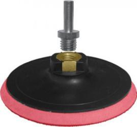 Шлифовальный диск с липучкой, пластиковая основа. Гайка М14 для крепления на шлифовальные и отрезные машинки. В комплект входит переходник со штифтом из инструментальной стали для крепления на дрель. Предназначен для крепления наждачных кругов.