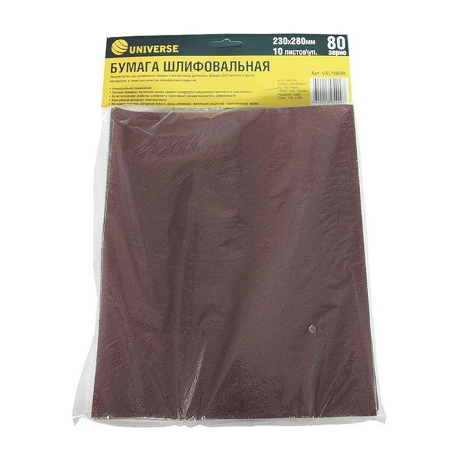 Шлифовальная бумага Universe USL150080 предназначена для шлифования твердых и мягких пород древесины, фанеры, ДСП, металла и других материалов, а также для зачистки лакокрасочных покрытий. Степень зернистости Р-80 позволяет произвести первичную зачистку и разравнивание поверхности.