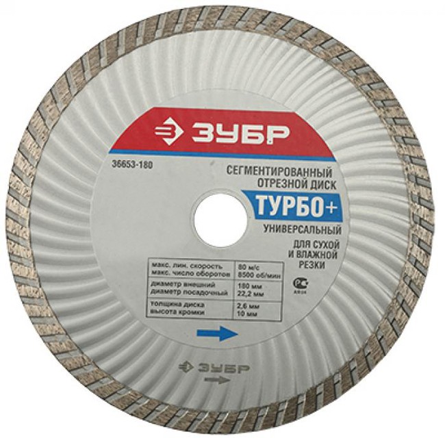 Круг отрезной алмазный Зубр 36653-230 применяются в угловой шлифовальной машине для резки (сухой и с применением охлаждающей жидкости) бетона, гранита, кирпича, камня, мрамора и других строительных материалов