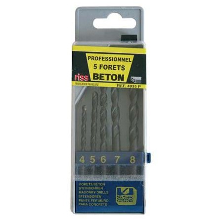 Серия 5000. В набор входят 5 сверл по бетону диаметром 4, 5, 6, 7, 8 мм, упакованных в пластиковый бокс.