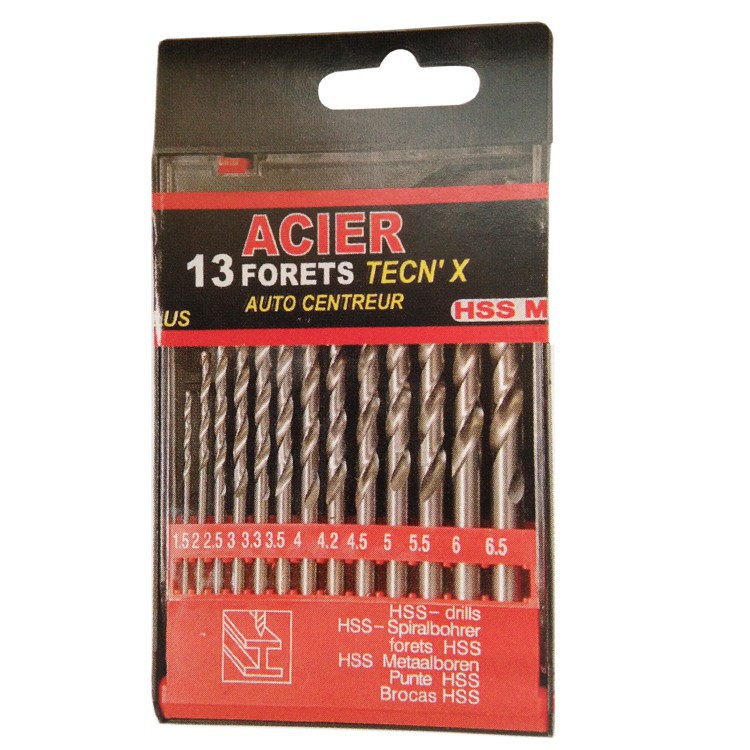 Серия 3085. В набор входят 13 сверл по металлу диаметром 1,5-6,5 мм, упакованных в пластиковый бокс. Оснастка имеет цилиндрический хвостовик.
