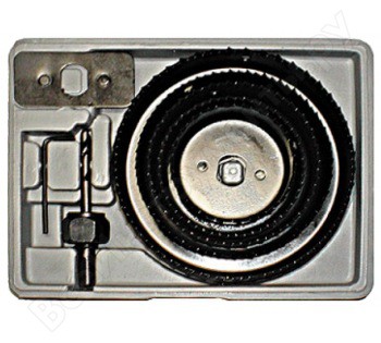 Пилы изготовлены из термообработанной усиленной инструментальной стали. В наборе 5 лезвий, поставляются в пластиковом чемодане, удобном для хранения и транспортировки. Диаметры пил: 67, 76, 89, 102, 127 мм. В комплект также входит держатель для фиксации коронки.