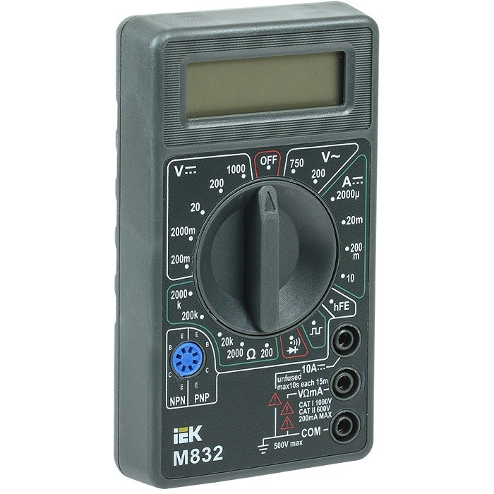 Мультиметр цифровой IEK Universal M832 представляет собой электроизмерительное устройство, позволяющее быстро и безопасно проверять основные параметры электрической цепи.