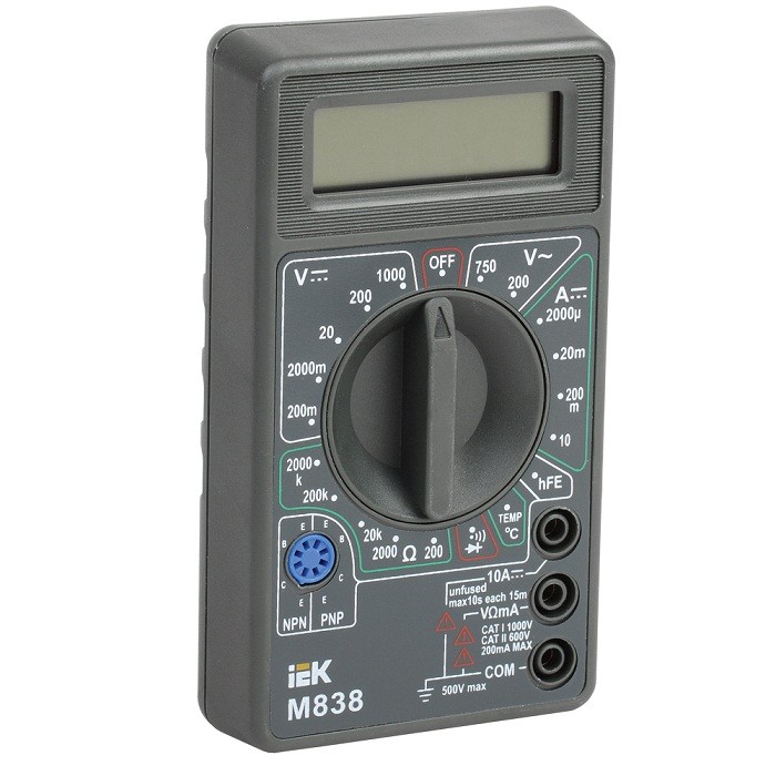 Мультиметр цифровой IEK Universal M838 представляет собой электроизмерительное устройство, позволяющее быстро и безопасно проверять основные параметры электрической цепи.