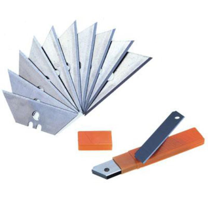 Лезвия с крючком Kapriol 32811 упаковка 5 шт - предназначены для смены элементов в ножах, использующихся для нарезки картона, различных тканей, бумаги, полиэтиленовой пленки, различных тканей. Лезвия отличаются своей практичностью и долговечностью, трёхгранная заточка, благодаря высококачественным материалам как углеродистая сталь, обладает высокой режущей способностью в течение длительного периода использования. Поставляются в пластиковом контейнере.