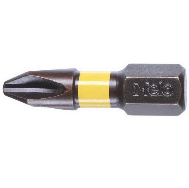 Бита крестовая серии 4 Impact Felo PH2 25 мм с хвостовиком С 6,3 1/4" предназначена для монтажа/демонтажа крепежных изделий, имеющих шлиц PH2. Используется в качестве сменной насадки для вкручивания и выкручивания шурупов и винтов при помощи дрелей-шуруповертов, а также аккумуляторных и сетевых отверток. Крестовой шлиц имеет четыре крупных лучевых диагональных ребра. Цифра после PH маркировки связана с диаметром наружной резьбы крепёжного элемента и является стандартом для всех крестообразных шлицов.