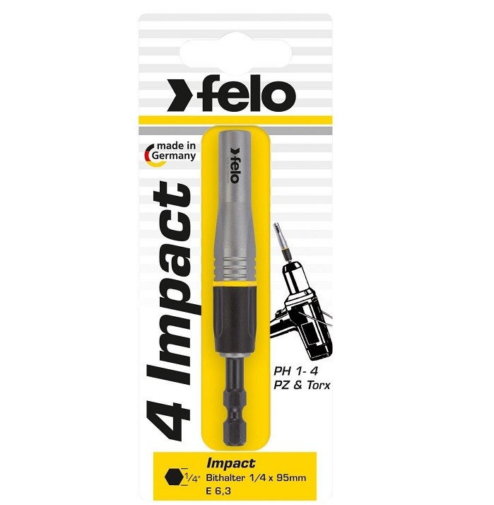 Магнитный ударный битодержатель Felo (или как его называют битхолдер) для бит с посадкой 1/4" состоит из 4-х секционного стержня. Каждая его секция разного диаметра.
