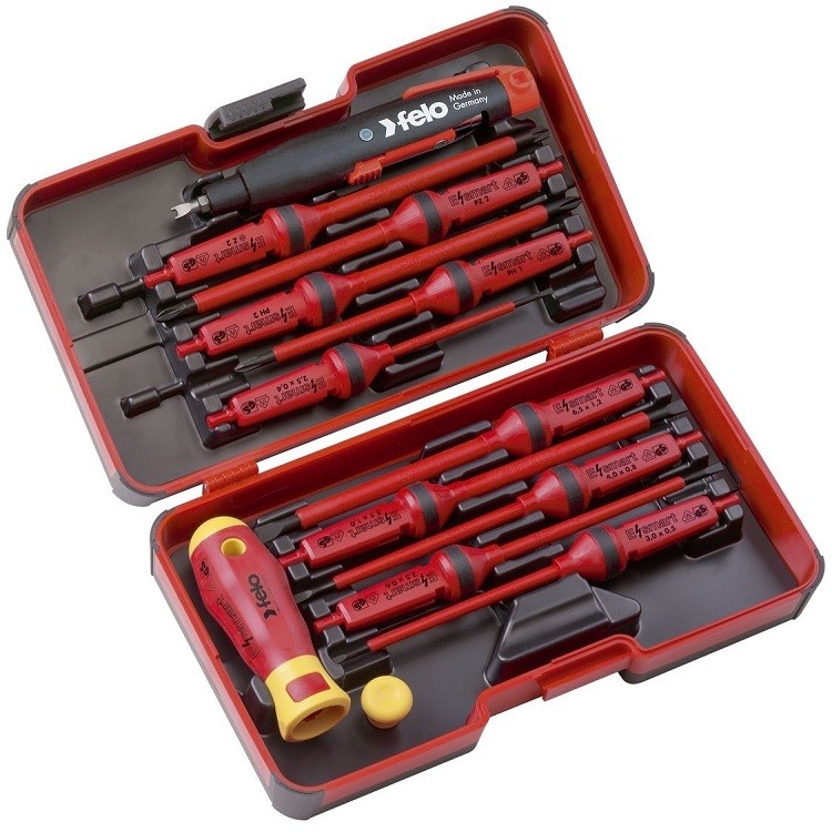 Немецкая компания Felo – известный во всем мире производитель профессионального ручного инструмента. Отвёртки Felo отличаются уникальной конструкцией и дизайном рукоятки: при использовании фирменной профессиональной отвертки тратится меньше сил, чем при работе со стандартными недорогими инструментами. Наборы инструментов отличает удачная комплектация, компактность, традиционные для этого производителя качество и надёжность.