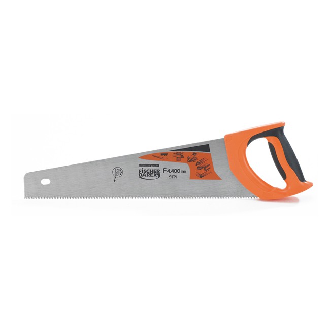 Пила по дереву Fischer Darex F4.400 - универсальный ручной режущий инструмент для распиловки (разрезания) древесины. Основная часть представляет собой стальное полотно с зубьями по краю. Каждый зуб - это элементарный резец в виде клина.