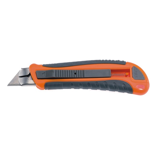 Нож-резак Kapriol 32829 в эргономичном двухкомпонентном корпусе для удобного удержания в руке. Имеет направляющую из нержавеющей стали для прочного и правильного закрепления лезвия, механизм его фиксации и клипсу с прорезью для отламывания использованных сегментов. Нож применяется для разрезания обоев, пленки, картона.