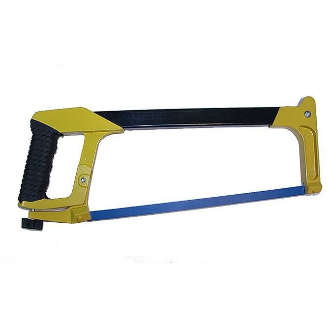 Ножовка по металлу Universe C13502 представляет собой узкую пилку, которая имеет тонкие зубчики. Полотно крепится к П-образной раме с двух концов, а сила его натяжения регулируется с помощью специального винта. С одной стороны рамы присутствует двухкомпонентная рукоятка для удобного хвата. Ножовка по металлу имеет два угла установки.