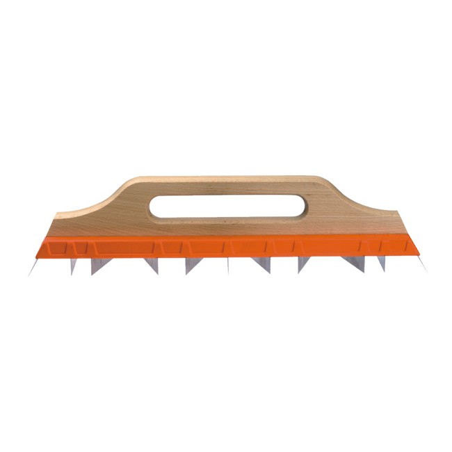 Рубанок по штукатурке Kapriol 23320 представляет собой основание из полистирола с рукояткой из древесины и лезвиями из прочной стали, стойкой к коррозии.
