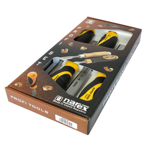 Набор стамесок для резьбы по дереву из 4 плоских стамесок Narex Super 2009 860600 с двухкомпонентной ударной рукояткой.