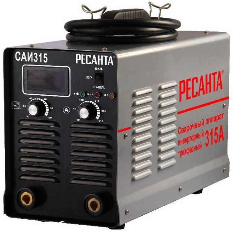 Инверторный трехфазный сварочный аппарат Ресанта САИ 315 3ф предназначен для ручной электродуговой сварки постоянным током, покрытым электродом. Диаметр проволоки может составлять не более 6 мм. Инвертор обладает системой светодиодных индикаторов, своевременно информирующих оператора о состоянии аппарата и позволяющем контролировать его работу. В наличии также селектор регулировки величины сварочного тока, который дает возможность выбрать нужный режим работы. В случае перегрева аппарат автоматически отключится. Аппарат оснащен функциями «ANTI STICK» (анти залипание), и «HOT START» (горячий старт). Наличествует удобная ручка для переноски, которая позволяет сварщику свободно перемещаться по рабочему пространству. Металлический корпус надежно защищает внутренние узлы от физических повреждений. Построен на IGBT транзисторах.