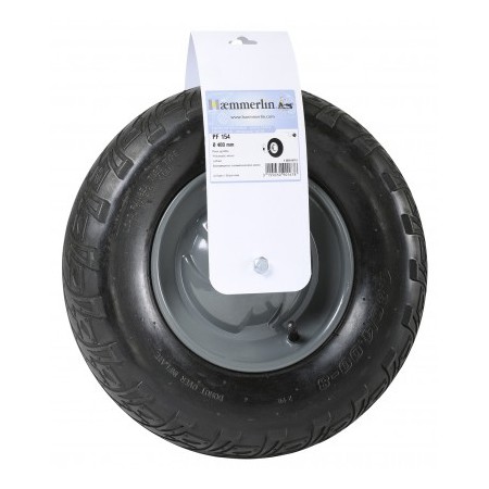 Надувное колесо для садовых и строительных тачек Haemmerlin PF 154. Запчасть сделана из высококачественной полимерной резины. Меняется без труда с использованием специального ключа.