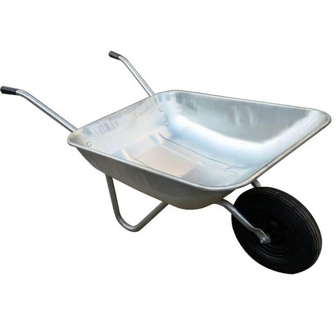 Два стояночных упора надежно защищают тачку от переворота во время погрузки, а удобные прорезиненные рукоятки обеспечивают надежный обхват и отсутствие проскальзываний во время транспортировки строительных материалов.