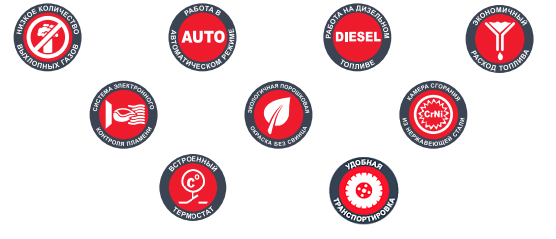 Данная тепловая пушка обладает механизмом прямого нагрева, который значительно лучше по уровню КПД, нежели устройства непрямого нагрева. Специальная металлическая заслонка, установленная на выходе из сопла, блокирует попадание внутрь устройства посторонних предметов и ограничивает прямой контакт с пламенем горелки. Благодаря наличию системы контроля пламени и встроенному термостату, устройство способно осуществлять работы в полностью автоматическом режиме, не допуская перегрева и перерасхода топлива.