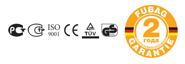 Оборудование Fubag производится в соответствии с международными стандартами ISO и прошло добровольную сертификацию TV. Оборудование проходит многоуровневый контроль качества, осуществляемый опытными специалистами. Высокое качество продукции Fubag также подтверждается 2-х летним сроком сервисного обслуживания по гарантийным случаям.