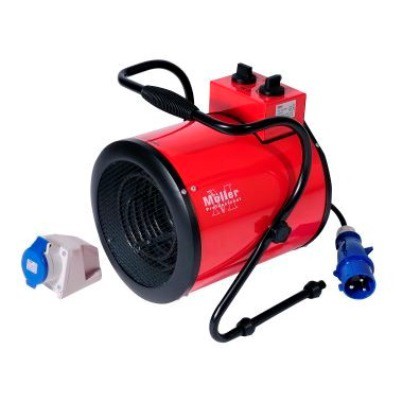 Пушка работает от электросети, а значит не потребляет кислород из воздуха и не производит вредных выхлопов. Управление прибором осуществляется с помощью блока, расположенного на верхней панели. Ступенчатый регулятор позволяет выбрать из двух режимов обогрева, расходующих разное количество электроэнергии (2,5 и 5 кВт), или установить режим вентиляции без обогрева. Для поддержания определенной температуры воздуха в помещении модель оснащена термостатом, включающим и отключающим электронагреватели по мере необходимости. Дополнительную безопасность обеспечивает система аварийного отключения, автоматически отключающая прибор от сети питания в случае перегрева корпуса, который может быть вызван случайным падением или технической неисправностью.
