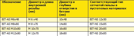 *анкер-гильзы из нержавеющей стали BIT-АS М6х48 - поставляются по спецзаказу